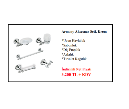 5 Parça: Askılık, Sabunluk, Diş Fırçalık, Uzun Havluluk, Tuvalet Kağıtlık